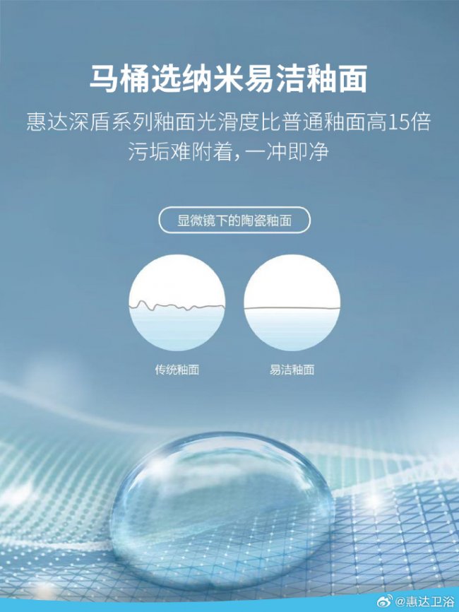 浴室潮湿密闭的环境极易成为细菌霉菌的滋生地,普通清洁难以彻底清除隐患。惠达健康卫浴从材质升级入手,打造长效抗菌防潮的卫浴空间。比如,惠达深盾系列马桶采用纳米易洁釉面,其光滑度较普通釉面提升15倍,污垢难以附着,实现一冲即净,从根源上减少细菌滋生的温床。